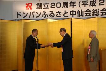 (功労賞として賞状と盾を授与)