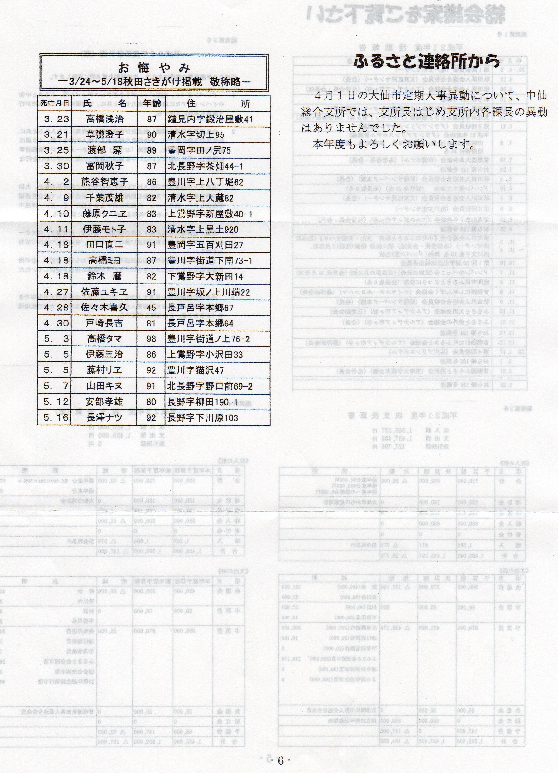 お悔やみ 5/6~7/13 秋田さきがけ掲載 敬称略