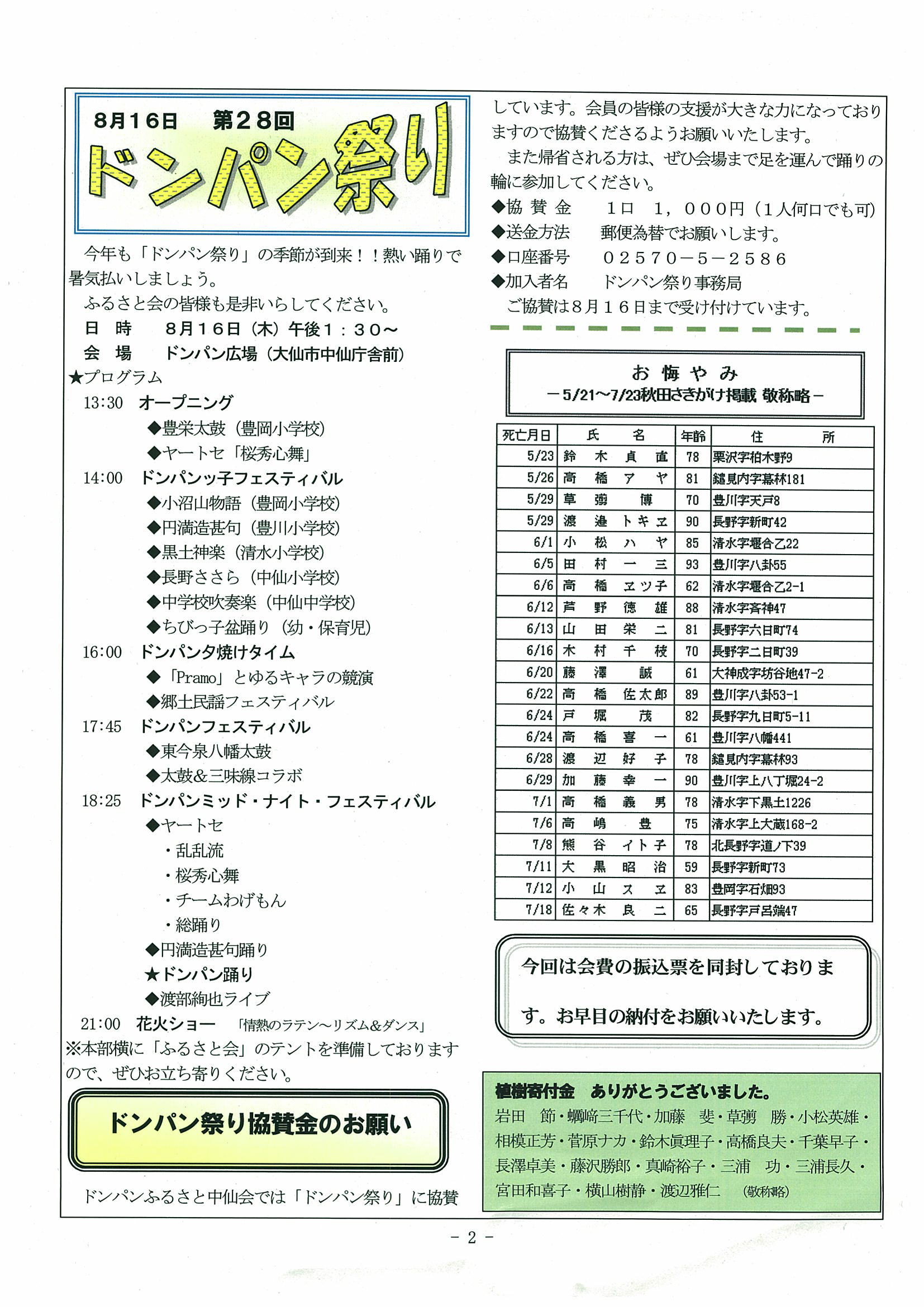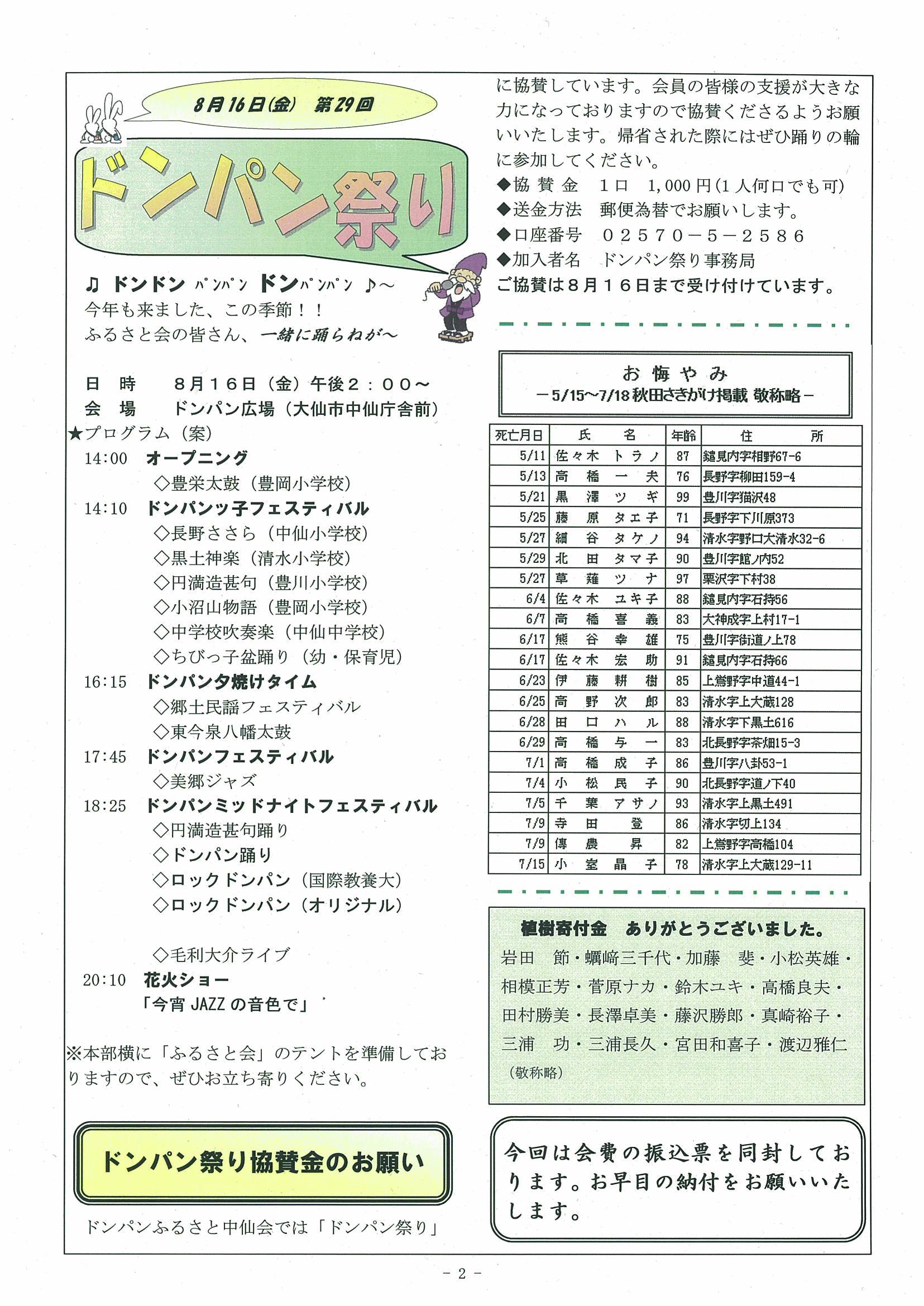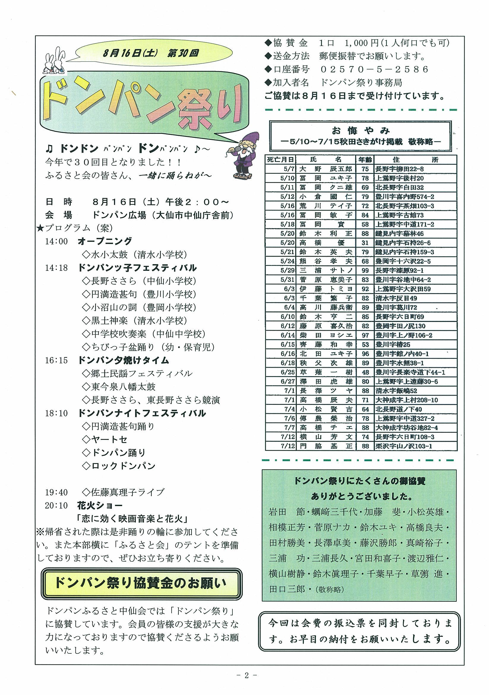 ドンパン祭り協賛金のお願い