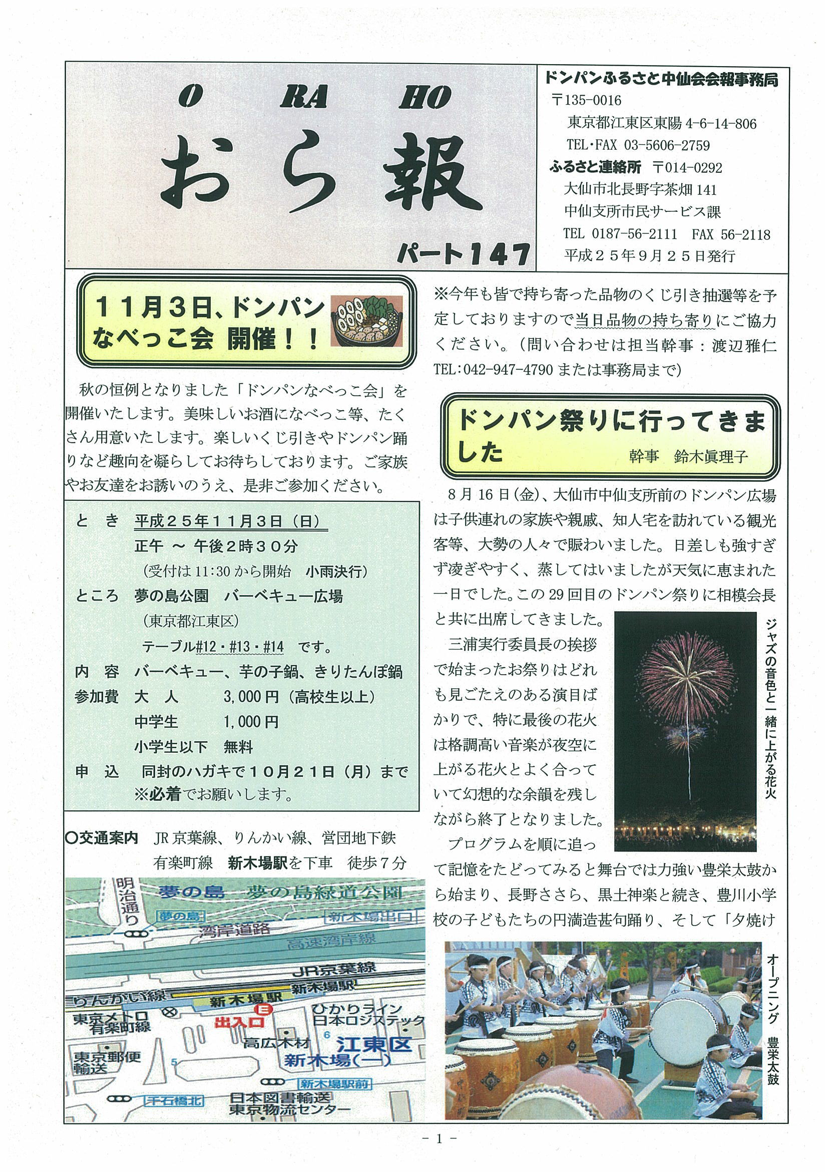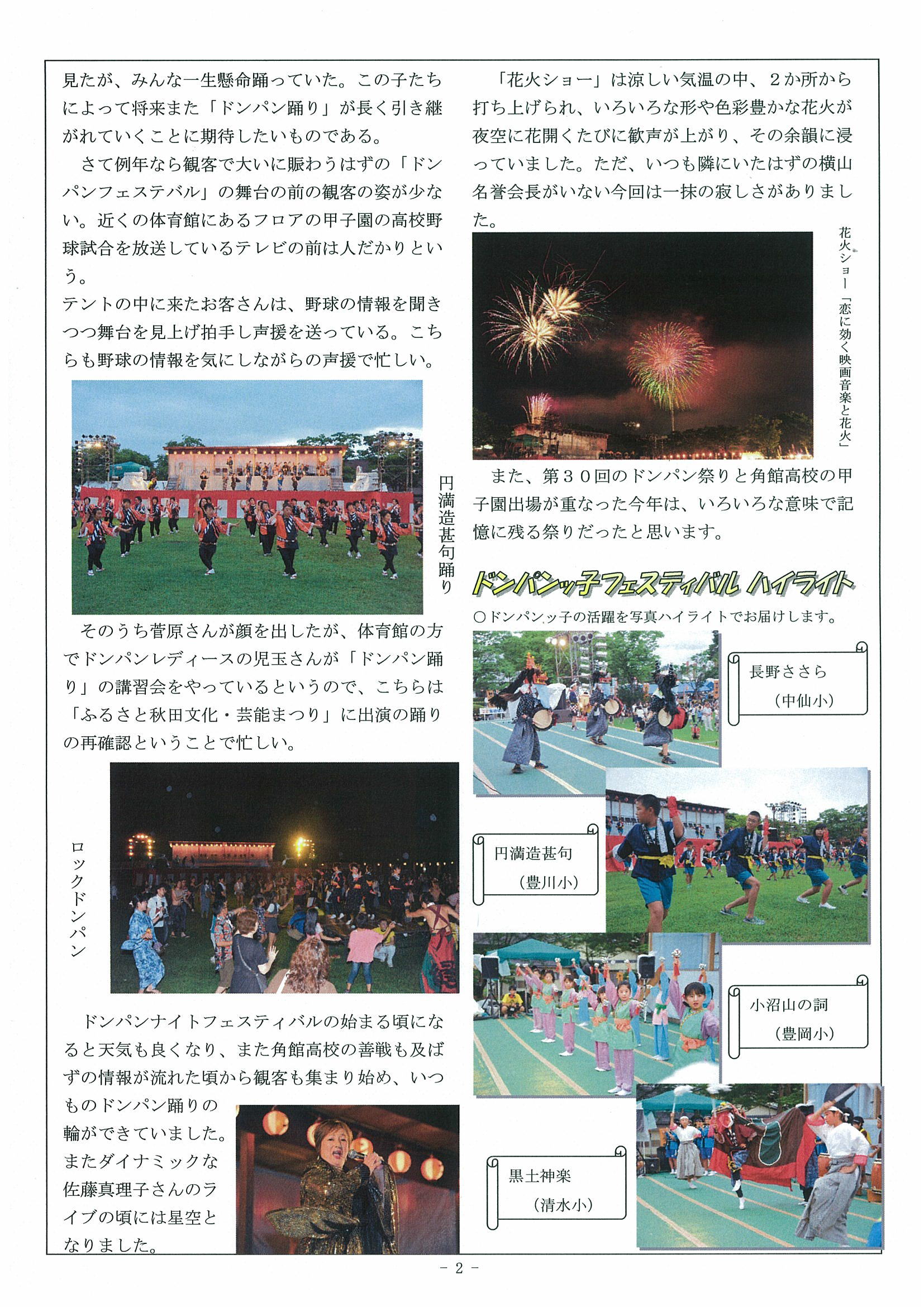 ドンパンふるさと中仙会は、秋田県仙北郡中仙町(旧)現在は大仙市(長野・鶯野・豊川・豊岡・清水・
