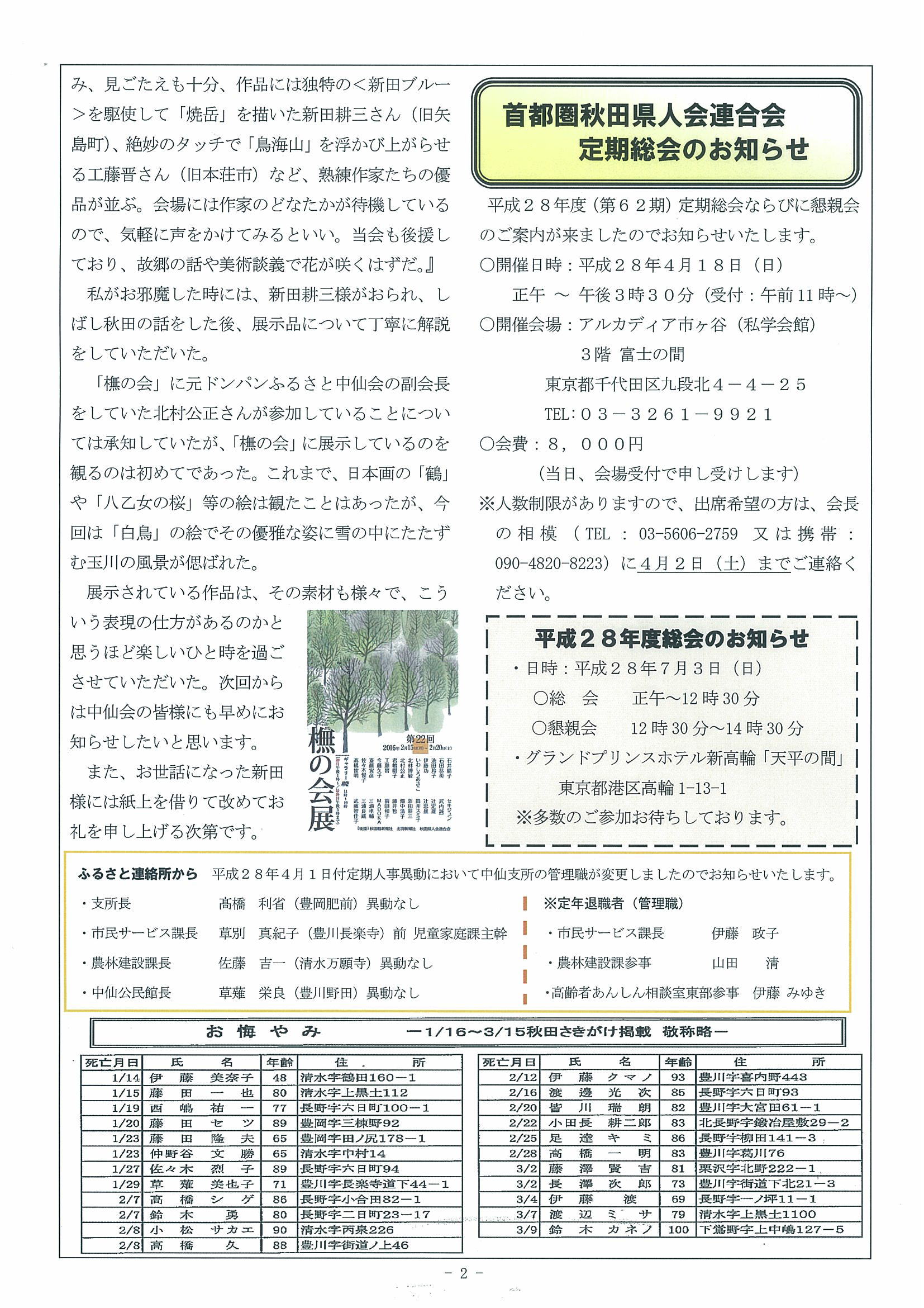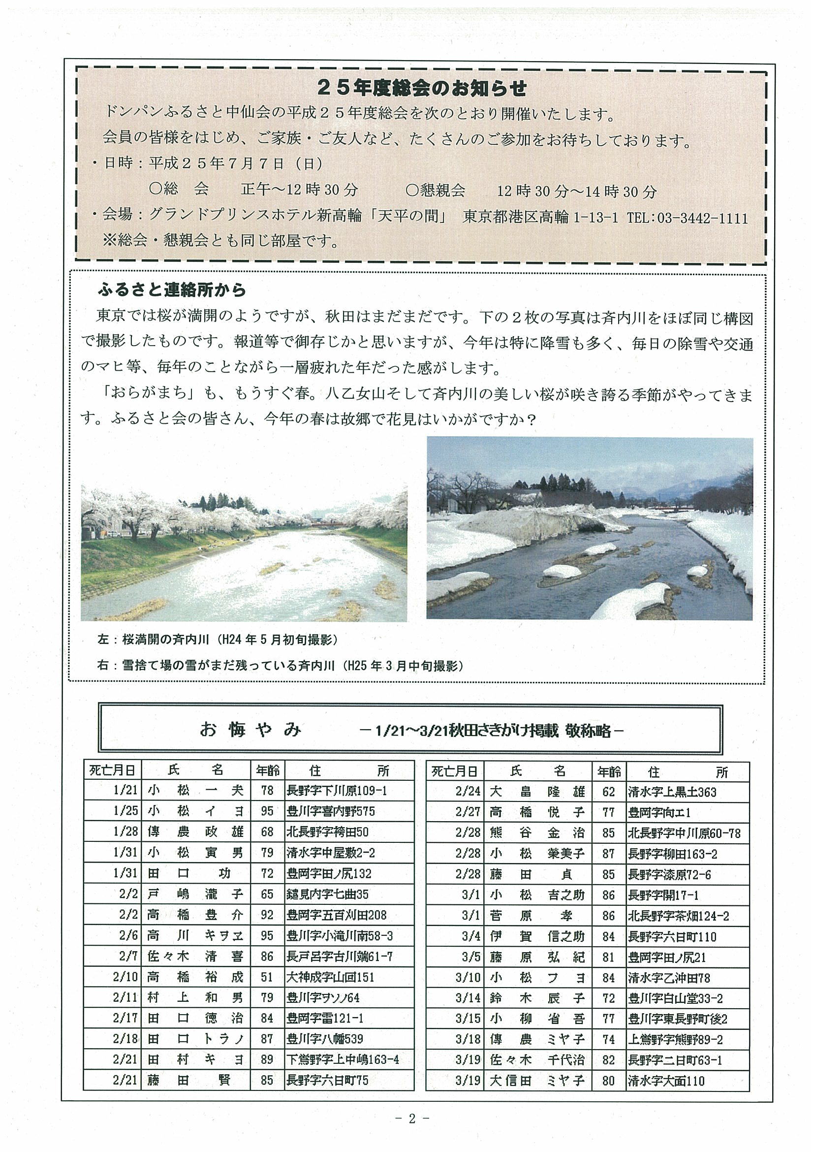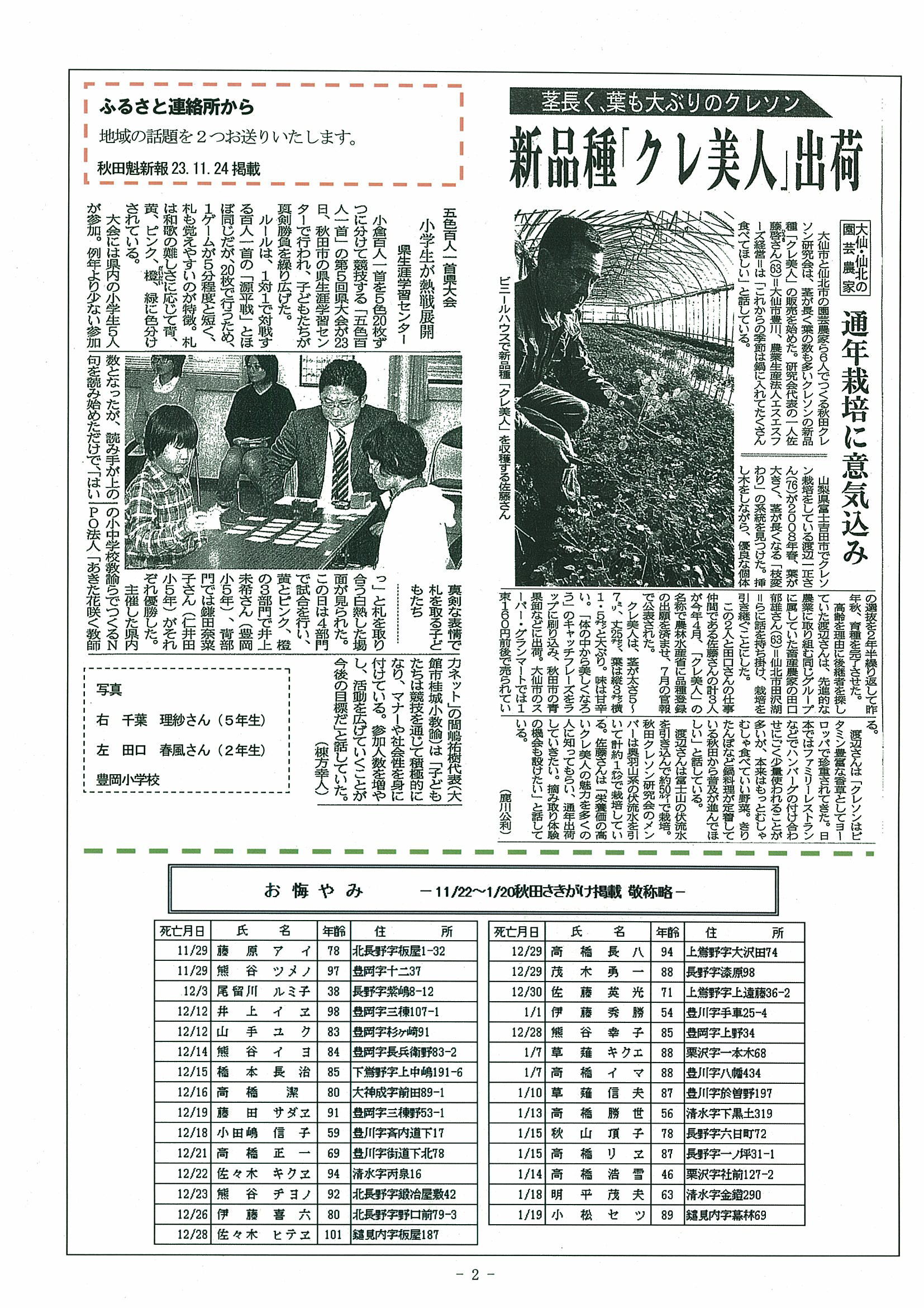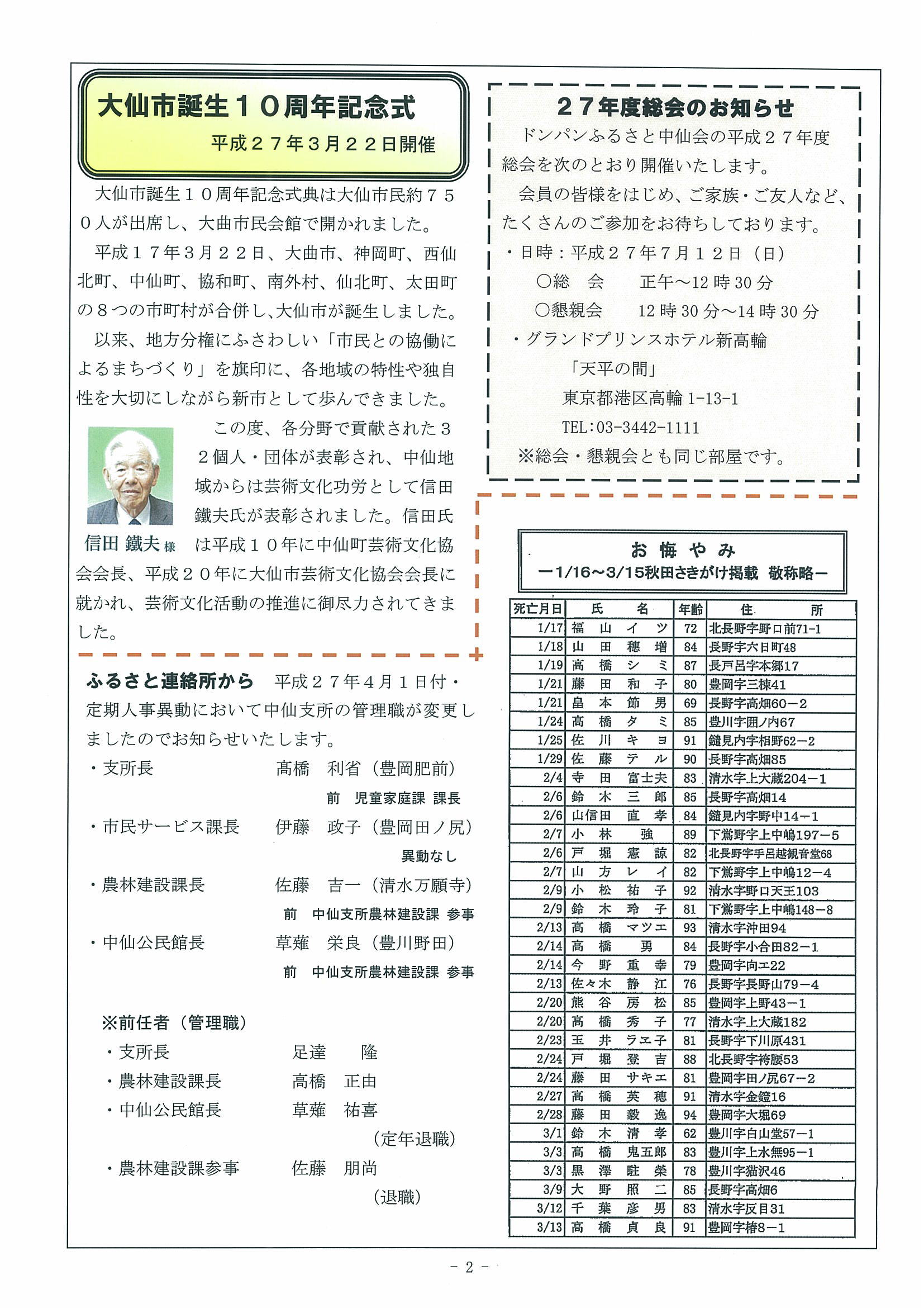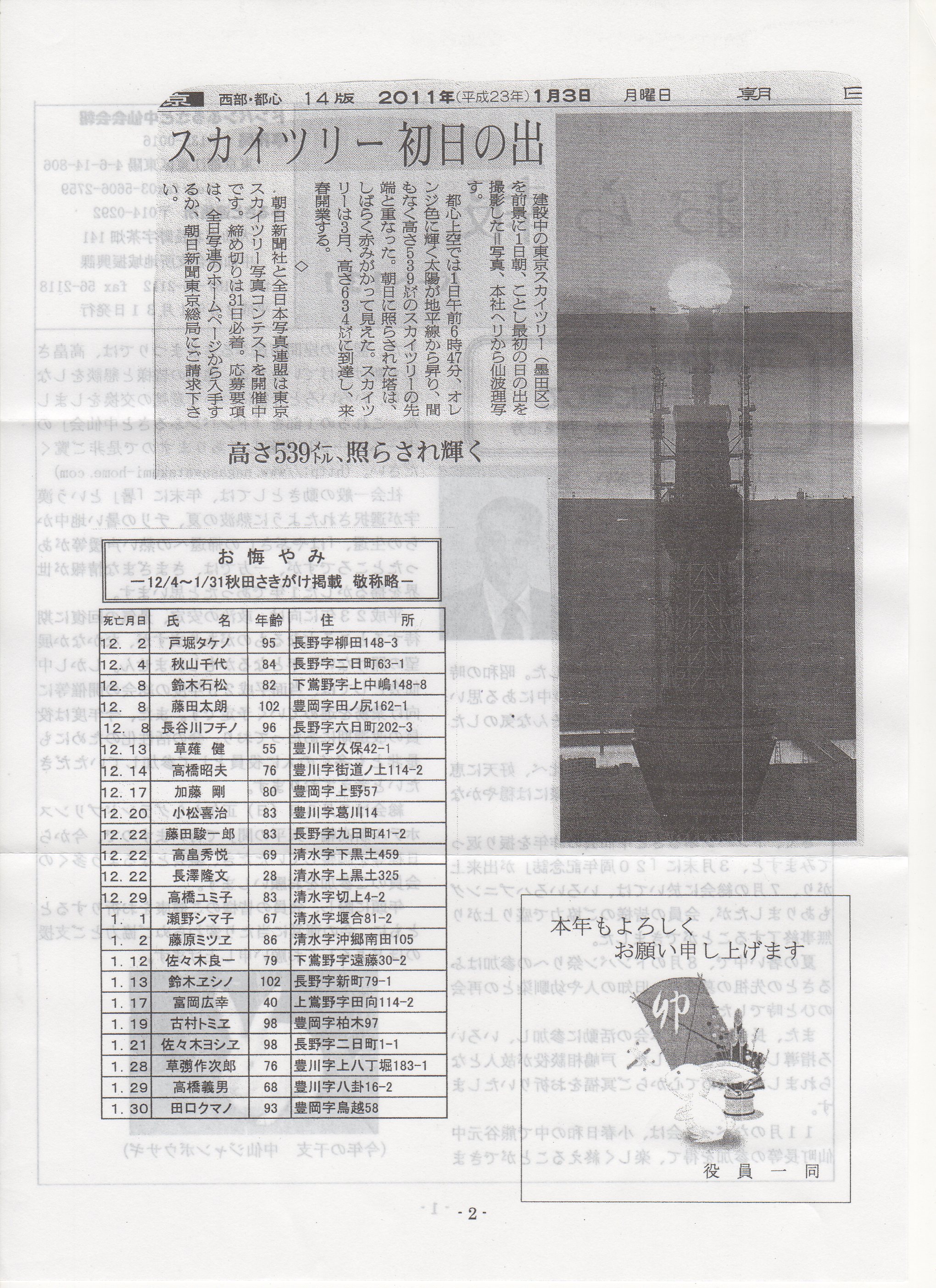 お悔やみ 1/15~5/3 秋田さきがけ掲載 敬称略
