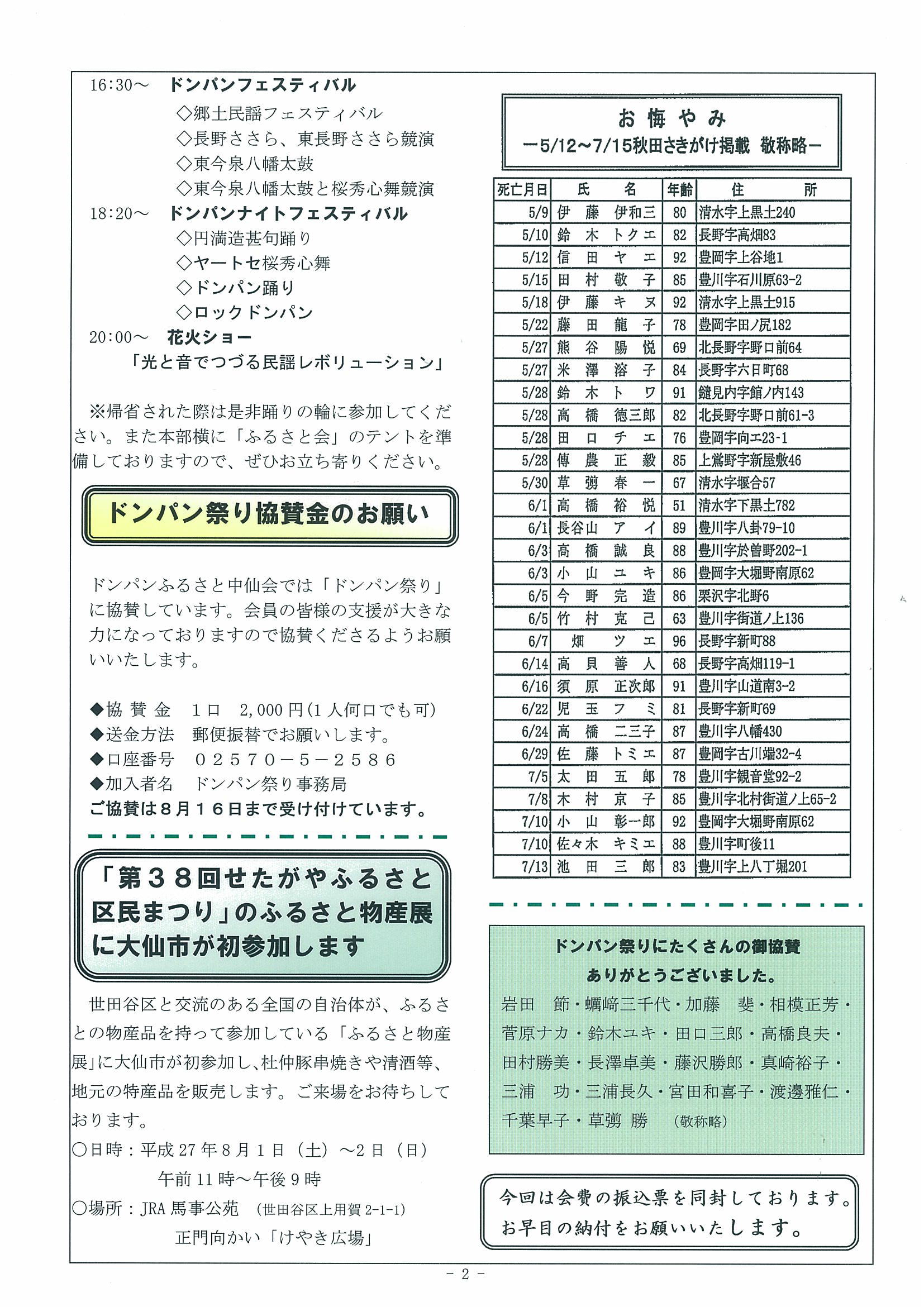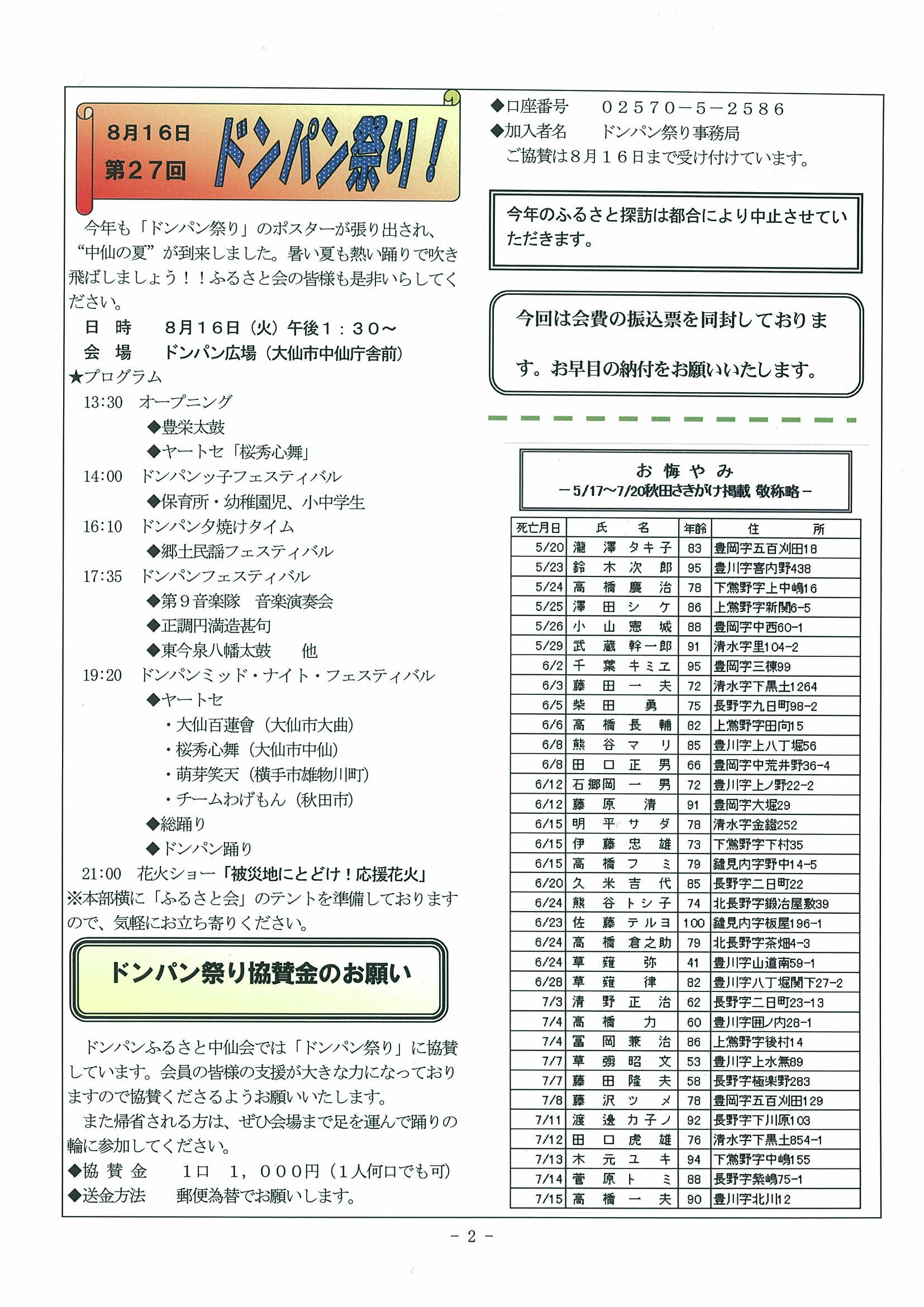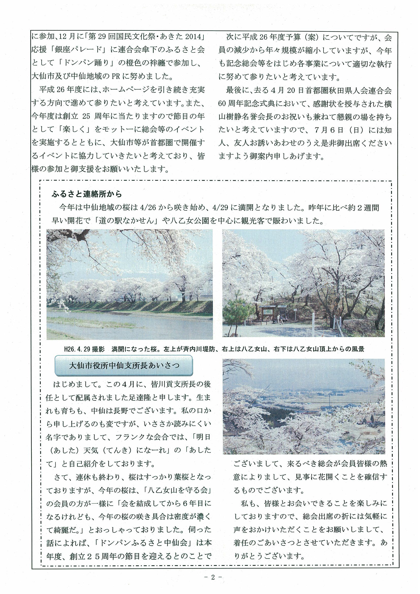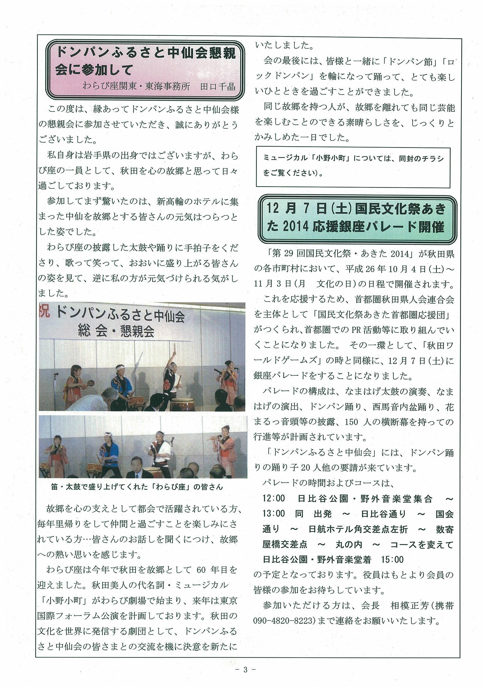 ドンパンふるさと中仙会に寄せて
