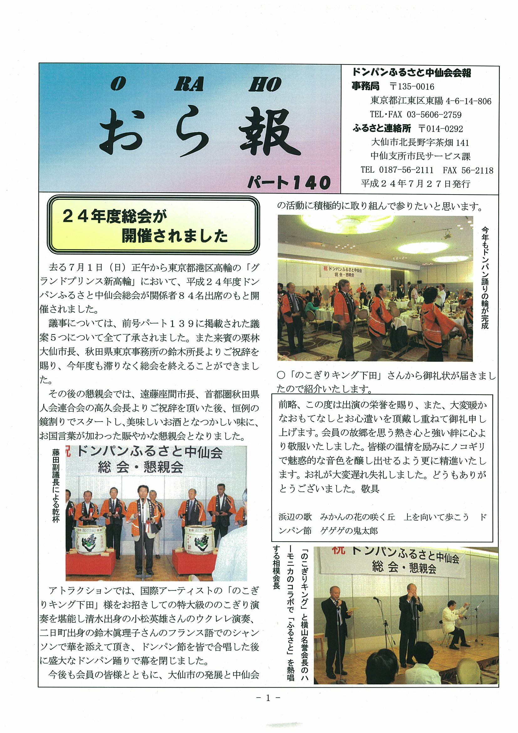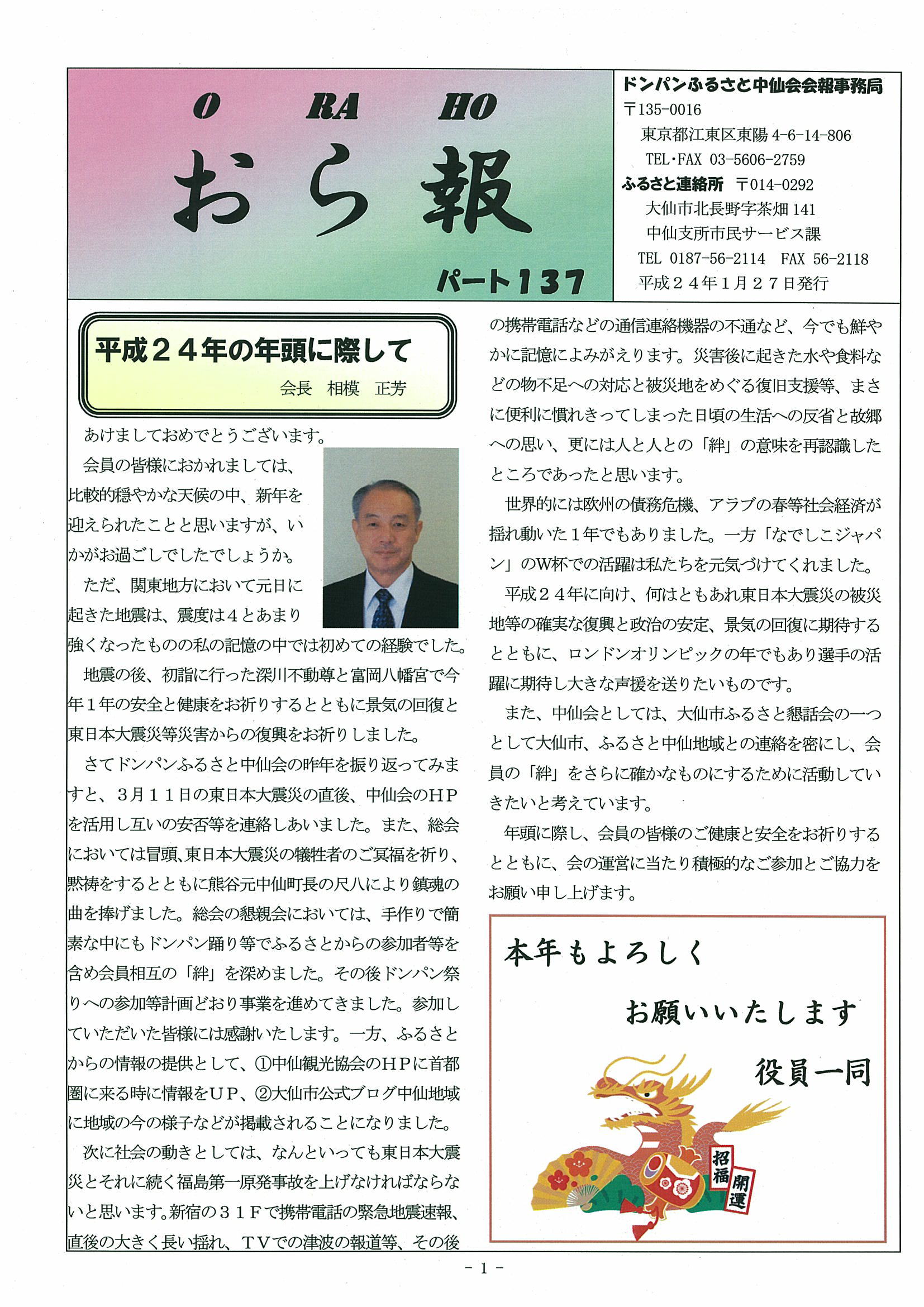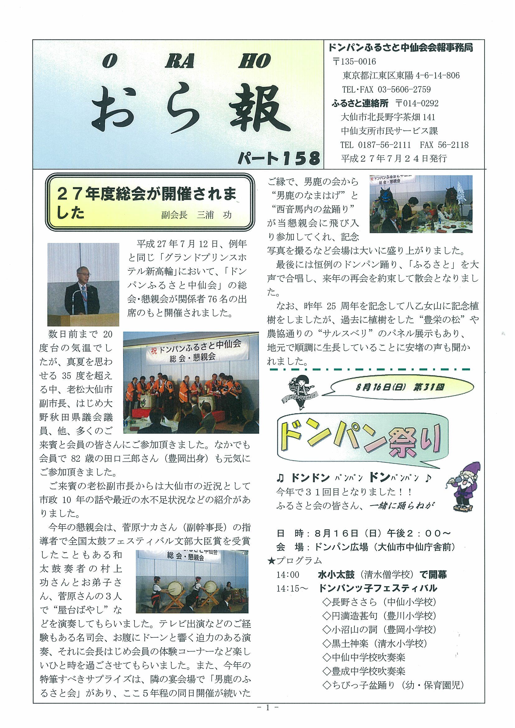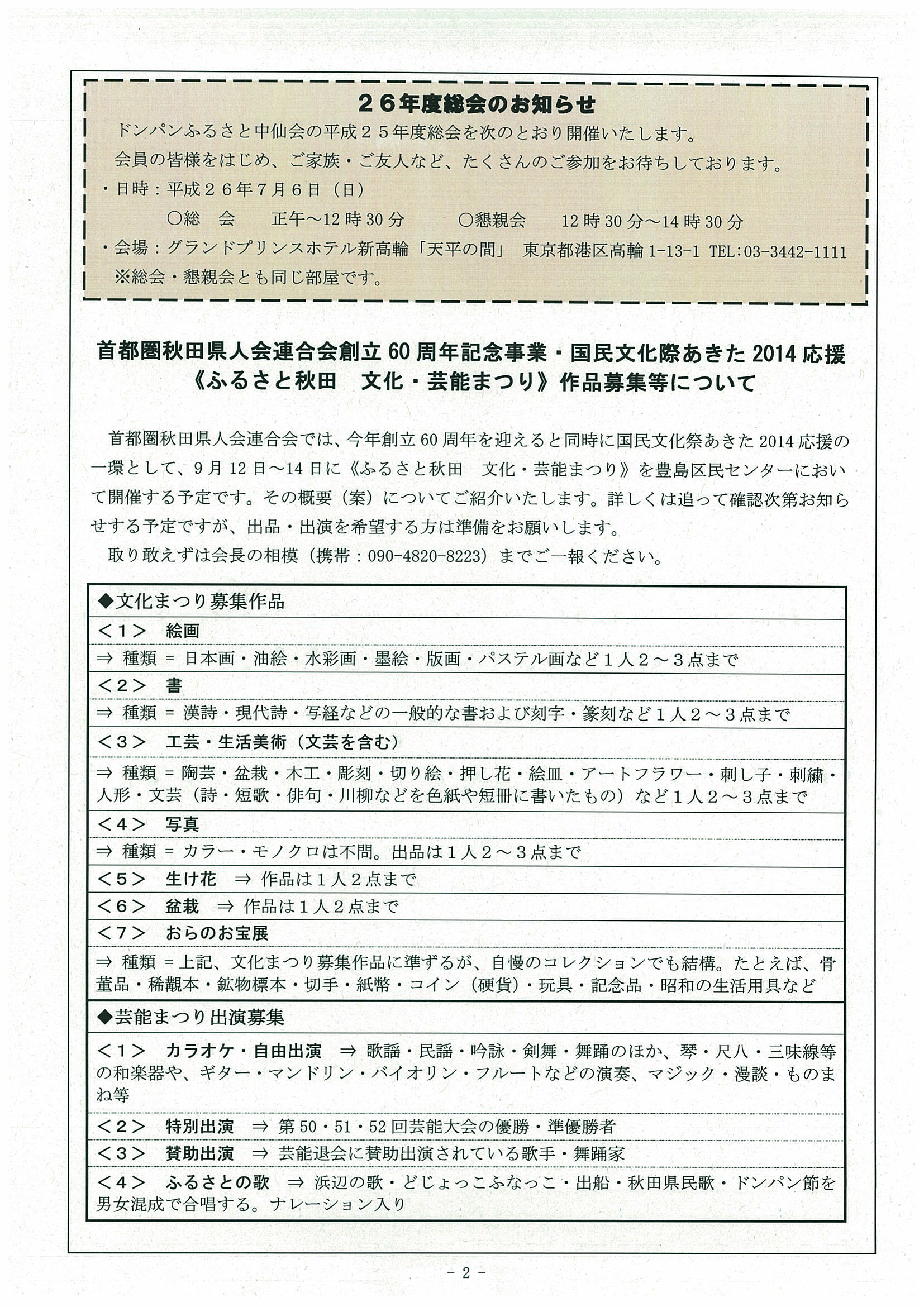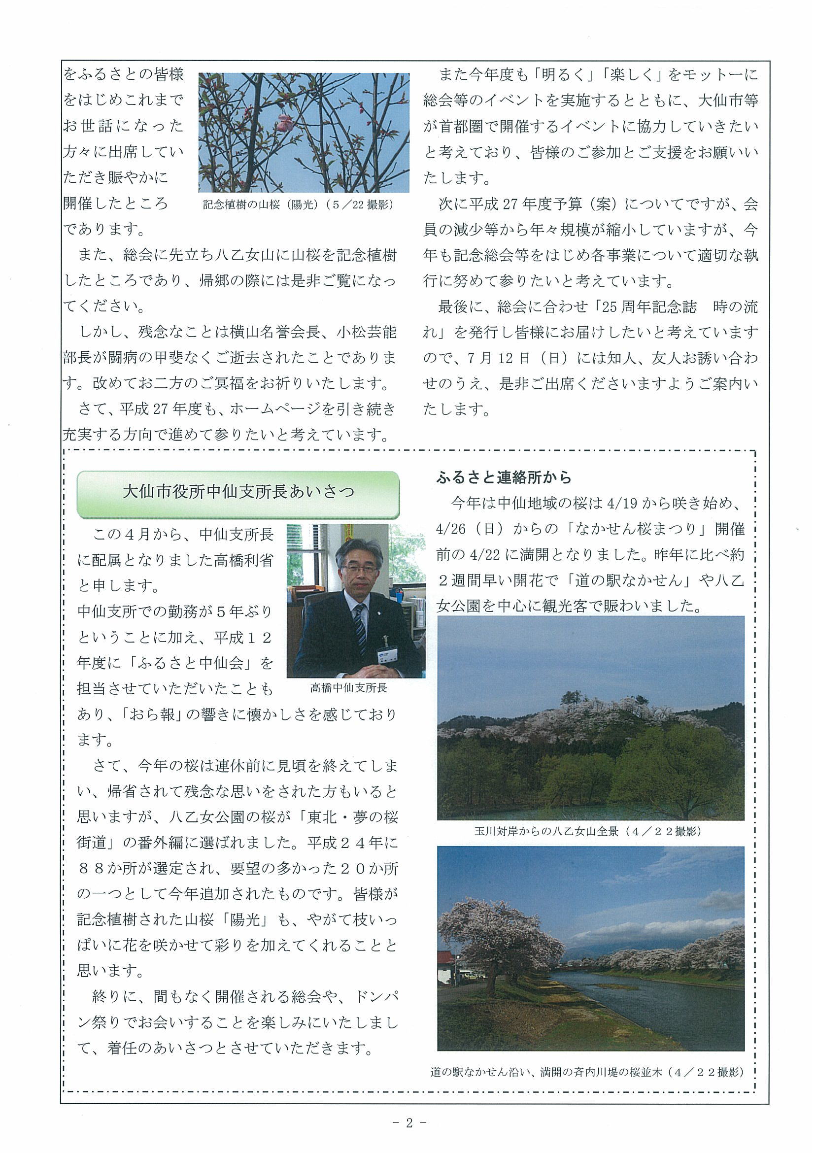 ドンパンふるさと中仙会に寄せて