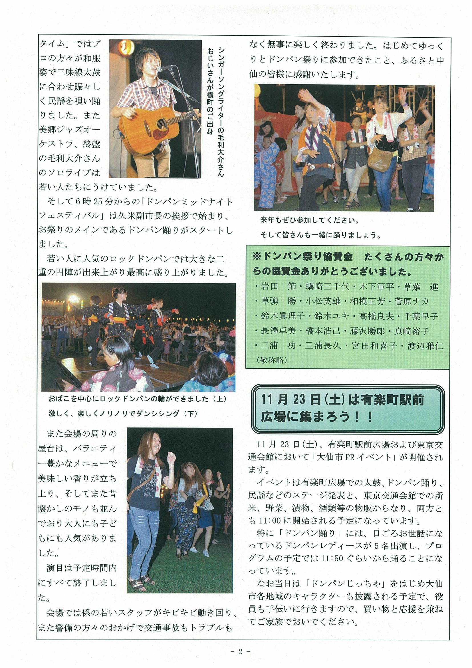 ドンパン祭り協賛金有難う御座いました