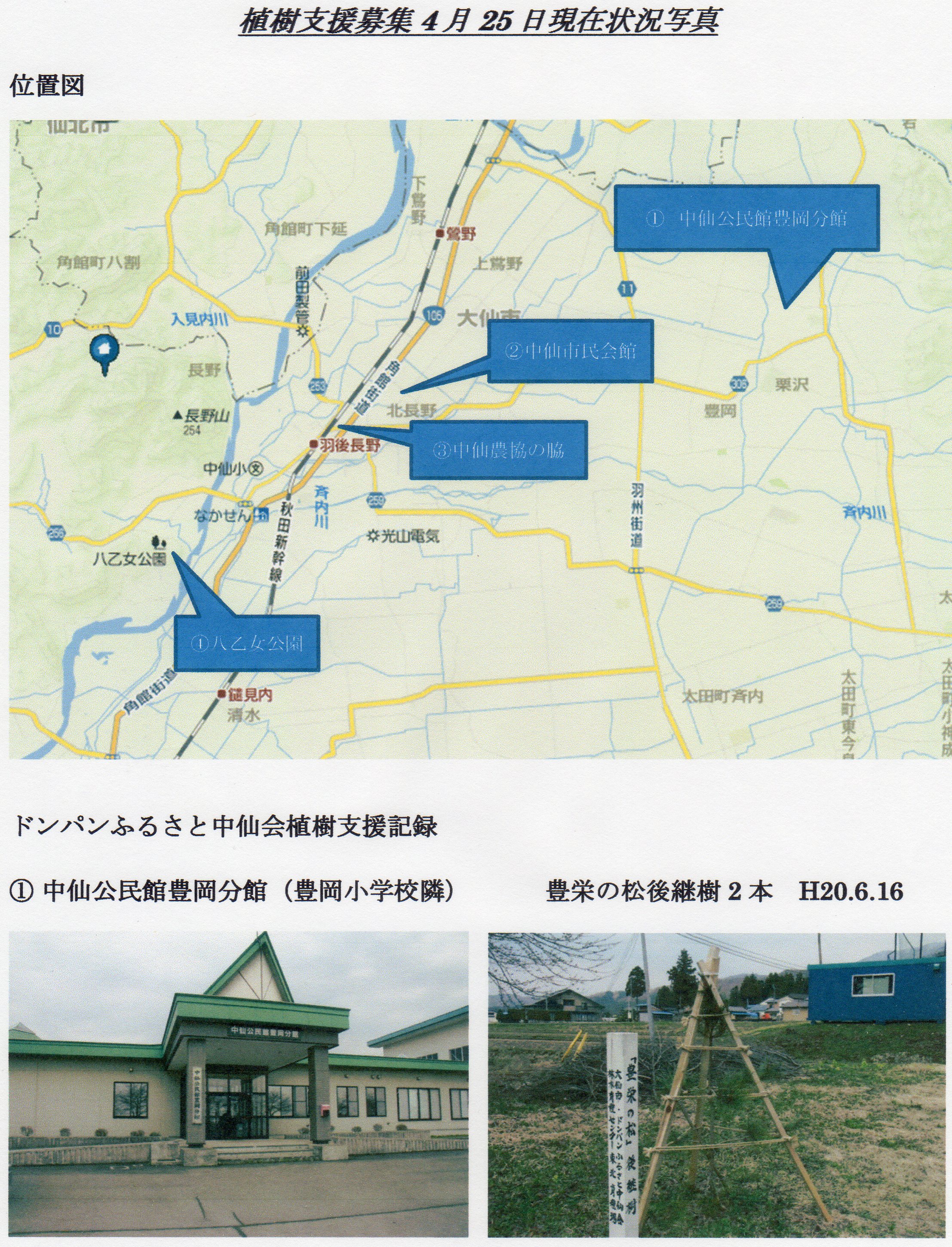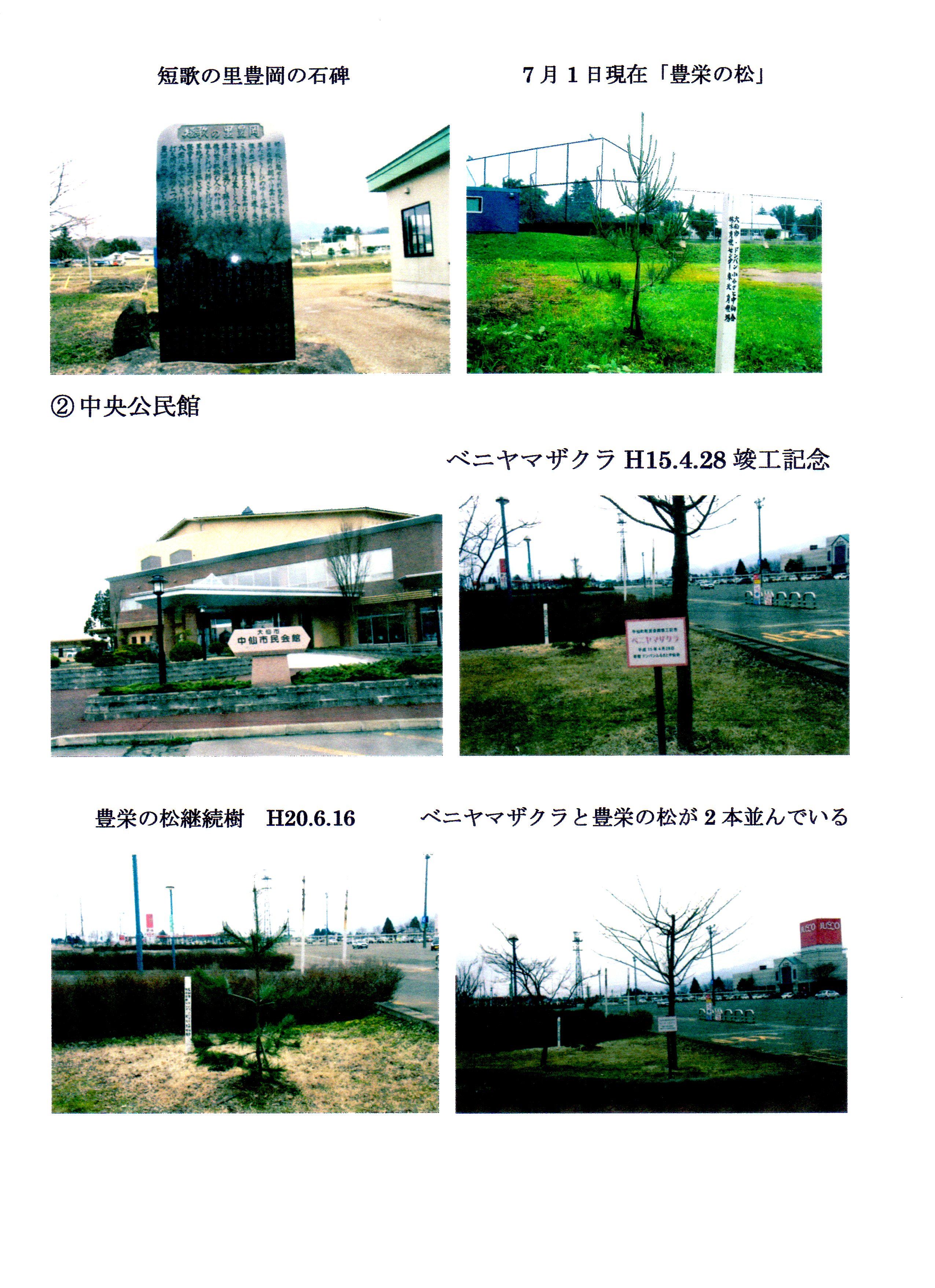 豊栄の松は立派に育ちますが、途中で枯れてしまい、中仙中央公民館及び豊岡分館には後継樹として