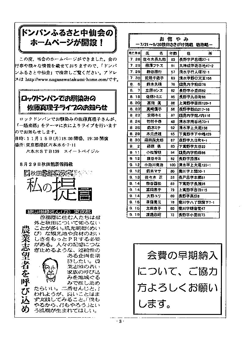 お悔やみ 7/29~9/27 秋田魁掲載 敬称略