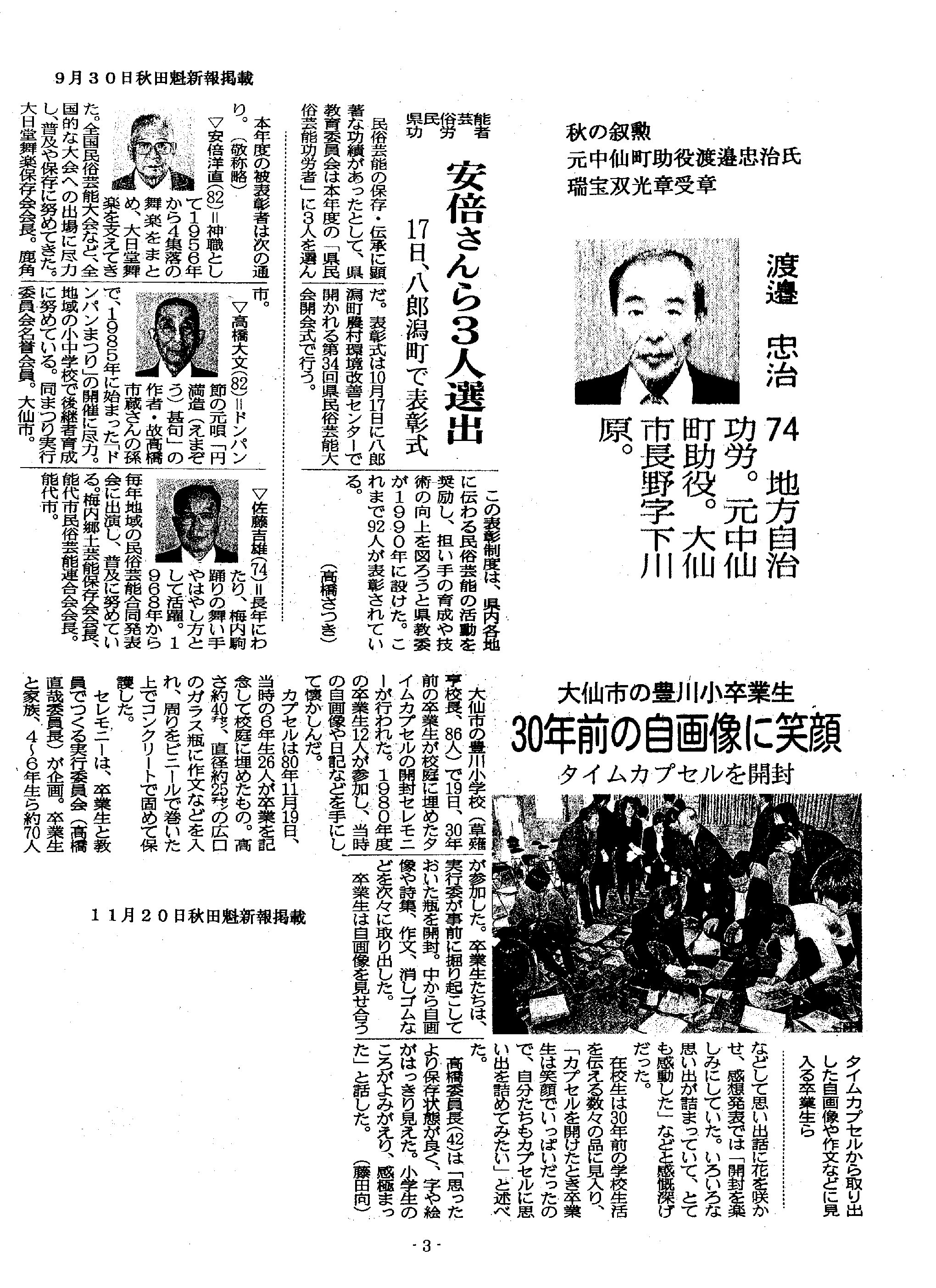 7/12~9/16秋田魁新聞掲載(敬称略)